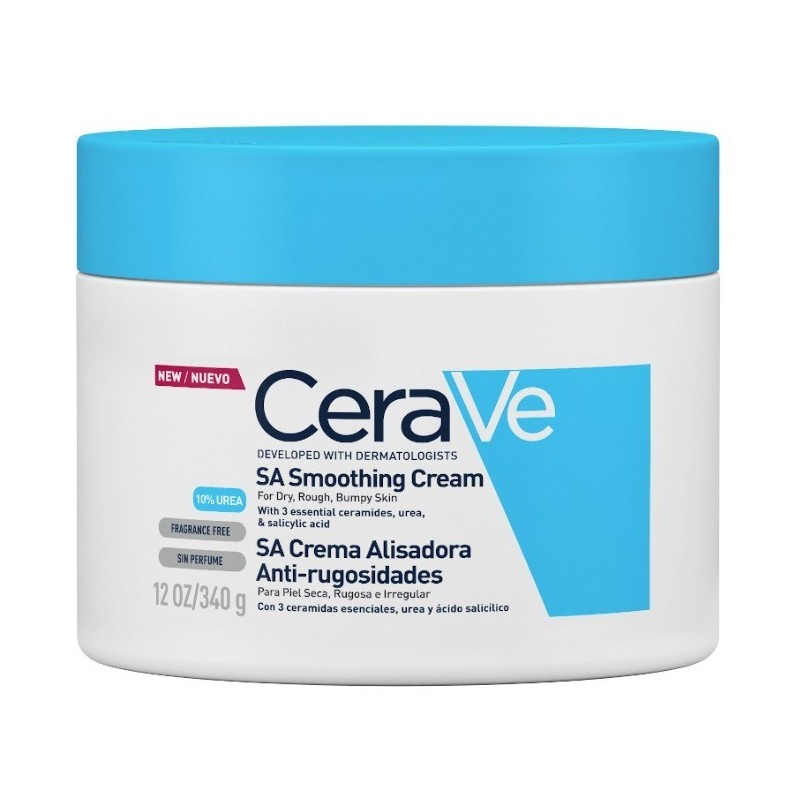 Cerave SA Crema Alisadora Anti-rugosidades 340 gr mejora la textura de la piel gracias al ácido salicílico y la urea. Reconforta la piel gracias al ácido hiualurónico sin grasa. Fórmula hipoalergénica y sin perfume que no compromete la tolerancia del producto.
